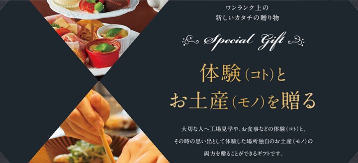 これまでの体験ギフトでは得られなかった、商品を手に取る、または所有する喜びを、「カタチ」にとらわれない経験や体験といった思い出作りと合わせて、大切な人に贈ることをコンセプトとしています。