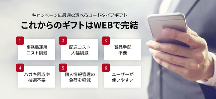企業の販促キャンペーンや、ポイント交換景品、カーディーラーや保険会社の成約ノベルティなどのセールスプロモーション領域に向けて「ギフトカード」「コードギフト」の開発、提案、販売を手掛けています。