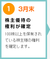 当社では、毎年3月31日現在の株式名簿に記載または記録された単元株式数(100 株)以上保有の株主様1名につき1口、当社オリジナルギフト商品をご賞味いただける株主優待を行っております。優待のお届けは6月を予定しております。