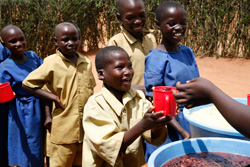 世界では多くの子どもたちが一日に一度の食事すらとることもできずに、飢えや栄養不良によって命を落としています。「学校給食プログラム」では、途上国の子どもたちに学校で栄養価の高い給食を提供する活動を行っており、子どもたちの健全な発育を助けると同時に、就学率・出席率を高める効果を上げています。