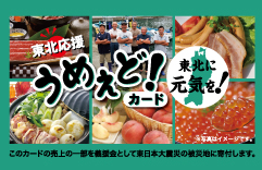 伊藤忠食品は、プリペイドカードの発行・販売と、商品交換用WEBサイトの運営を行うギフトカード事業において「東北応援うめぇどカード」を発行しており、売上の一部を被災地への義援金として寄付しています。
