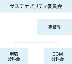 サステナビリティ委員会のもと、「BCM(事業継続マネジメント)分科会」「環境分科会」の2つの分科会を設け、それぞれのテーマに即した全社施策の検討や推進に取り組んでいます。また、サステナビリティ委員会の事務局を中心に、社会課題解決に向けた活動を推進しています。